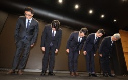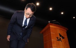 유영상 SK텔레콤 대표이사를 비롯한 임원들이 지난 25일 서울 중구 SKT타워에서 SK텔레콤 이용자 유심(USIM) 정보가 해커 공격으로 유출된 것과 관련해 고개 숙여 사과하고 있다. 뉴스1 SK텔레콤이 27일 해킹으로 가입자 유심(USIM) 정보가 탈취…