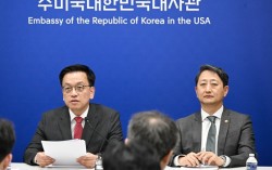 최상목 부총리 겸 기획재정부 장관이 안덕근 산업통상자원부 장관과 함께 24일(현지시간) 미국 워싱턴D.C. 주미대사관에서 한·미 2+2 통상협의(Trade Consultation) 관련 합동브리핑을 하고 있다. 뉴스1 한국과 미국의 관세 협상에서 오는 7…