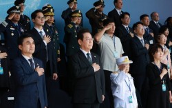 이재명 대통령이 1일 충남 계룡대 대연병장에서 열린 건군 77주년 국군의 날 기념행사에서 국기에 경례하고 있다. 연합뉴스 이재명 대통령은 1일 "굳건한 한미동맹 기반 위에 전시작전통제권을 회복해 대한민국이 한미연합방위태세를 주도해 나갈 것"이라고 말했다. 이…