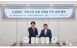 소상공인시장진흥공단은 24일(목) 오후 대전본부에서 쿠팡과 ‘소상공인·전통시장의 성장지원을 위한 상생협약’을 체결했다. 기념촬영을 하고 있는 전경수 쿠팡CPLB 대표이사(왼쪽), 박성효 소진공 이사장(오른쪽) 소상공인시장진흥공단(이사장 박성효, 이하 소진…