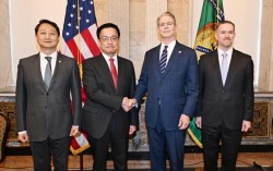 최상목 부총리 겸 기획재정부 장관이 안덕근 산업통상자원부 장관과 함께 24일(현지시간) 미국 재무부에서 열린 '한-미 2+2 통상협의(Trade Consultation)' 참석, 스콧 베센트 미국재무장관, 제이미슨 그리어 미국무역대표부(USTR) 대표와 회의시작에 앞서…