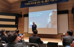 동원그룹 창업주인 김재철 명예회장이 23일 열린 경영에세이 ‘인생의 파도를 넘는 법’ 출간 기념 강연회에서 독자들에게 이야기하고 있다. 김경미 기자 “역사를 만드는 건 결국 도전이다. 시작해보겠다는 그 의지가 중요하다. 도전은 젊은이의 특권이니 많이 도전하기 바란…