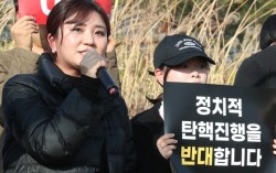 김소연 변호사 등이 3월 11일 대전 유성구 한국과학기술원(KAIST) 정문 앞에서 기자회견을 열고 윤석열 대통령 탄핵 반대 비상시국선언을 하고 있다. 뉴스1 8·22 국민의힘 전당대회에 반탄(윤석열 전 대통령 탄핵 반대)을 주장했던 보수 성향 스피커가 줄지어 출…