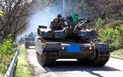 지난해 10월 강원도 홍천군에서 진행 중인 2024 호국훈련 중 육군 수도기계화보병사단 K1A2전차에 탑승한 장병들이 적진을 향해 이동하고 있다. [사진 육군 수도기계화보병사단] 군 당국이 하반기 대규모 야외기동훈련(FTX)인 ‘호국훈련’을 연기하는 방안…