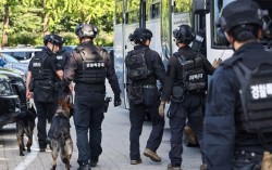 10일 서울 올림픽공원 KSPO돔(올림픽체조경기장)에서 폭발물 설치 신고가 접수된 가운데 수색을 마친 특공대가 이동하고 있다. 연합뉴스 최근 일본 변호사를 사칭해 폭파나 황산 테러를 예고하는 사건이 이어지자 경찰이 국제 공조를 통해 수사 중이라고 밝혔다.…