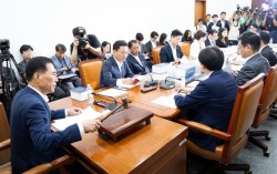 김주영 국회 환경노동위원회 고용노동법안심사소위원장(왼쪽)이 28일 서울 여의도 국회에서 제1차 법안심사 소위원회를 주재하고 있다. [뉴스1] 미국의 관세 압박으로 위기감이 커진 가운데 더불어민주당 주도로 28일 노란봉투법(노동조합 및 노동관계조정법 2·3…