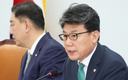 더불어민주당 진성준 정책위의장이 17일 서울 여의도 국회에서 열린 정책조정회의에서 발언하고 있다. 연합뉴스 이재명 정부의 첫 세제개편안 발표를 앞두고 더불어민주당 내에서 이견이 불거졌다. ‘배당소득 분리과세’와 ‘대주주 양도소득세 부과 기준 완화’를 놓고…