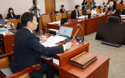 28일 오후 서울 여의도 국회에서 열린 법제사법위원회의 제3차 법안심사제1소위원회에서 김용민 소위원장이 상법 일부개정법률안을 상정하고 있다. 뉴스1 여당이 집중투표제 의무화와 감사위원 분리선출 확대 등을 포함하는 ‘더 센 상법’ 개정안을 28일 국회 법제사법위원회…