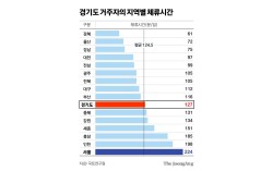 경기도 주민이 집을 나선 다음 서울에서 보내는 시간이 경기도 안에서 머문 시간보다 하루 평균 1시간 37분 더 많았다. 집은 경기도에 있지만 직장·여가 생활은 서울에서 더 많이 하고 있었다. 22일 국토연구원은 이런 내용이 담긴 국토정책 브리프 ‘모빌리티 빅데이터…