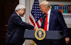도널드 트럼프 미국 대통령(오른쪽)과 세계 1위 파운드리(반도체 위탁생산) 업체인 대만 TSMC 웨이저자 회장이 지난 3월 3일 백악관에서 TSMC의 1000억 달러 미국 투자 계획을 발표한 뒤 악수하고 있다. UPI=연합뉴스 세계 최대 반도체 파운드리(…