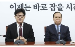 인사청문회 검증대에 오른 장관 후보자들의 각종 논란에도 이재명 대통령과 여권 지지율이 연일 상승하자 국민의힘이 당혹감을 못 감추는 분위기다. 송언석 국민의힘 비상대책위원장 겸 원내대표가 14일 국회에서 열린 비상대책위원회의에서 모두발언을 하고 있다. 임현동 기자 …