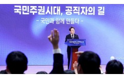 이재명 대통령이 14일 충북 진천 국가공무원인재개발원에서 70기 5급 신임관리자과정 교육생들에게 '국민주권시대, 공직자의 길'을 주제로 특강을 하며 질문을 받고 있다. 연합뉴스 이재명 대통령이 행정고시에 합격해 5급 사무관으로 임용된 신임 공무원들에게 "…