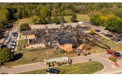 28일(현지시간) 미 미시간주 그랜드블랑타운십에 있는 예수그리스도 후기 성도 교회 예배당에서 총격과 화재가 발생해 최소 4명이 숨지고 8명이 다쳤다. 용의자는 현장에서 즉시 사살됐다. 사진은 화재 진압 이후 완전 소실된 현장에 응급구조대가 출동한 모습. [AP=연합뉴스…