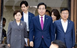 송언석 국민의힘 비상대책위원장 겸 원내대표를 비롯한 원내지도부가 11일 서울 여의도 국회에서 열린 원내대책회의에 참석하고 있다. 뉴스1 이재명 대통령이 13일 위례·대장동·백현동 개발 비리 의혹 사건 등 재판에서 자신의 변호인을 맡았던 조원철 변호사를 신임 법제처…