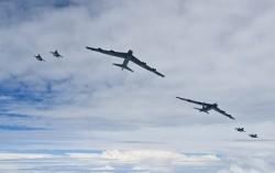 한·미·일 3국이 지난 11일 제주도 남방 공해상에서 연합 공중 훈련을 실시하는 모습. 이번 훈련에선 미국 B-52H 전략폭격기가 올해 들어 처음 한반도에 전개했다. 사진 국방부 제공, 연합뉴스 북한이 한·미·일 3국이 지난주 미국 B-52H 전략폭격기가…