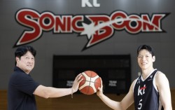 프로농구 KT의 문경은 신임 감독(왼쪽)과 새로 영입한 스타 가드 김선형이 24일 오후 수원 KT 빅토리움에서 포즈를 취하고 있다. 전민규 기자 “목표는 챔피언이죠. 우승 청부사 두 명이 만났잖아요.” 프로농구 수원 KT에서 다시 뭉친 문경은(54)…