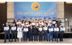중앙일보와 포브스코리아가 주최하고, 산업통상자원부·JTBC가 후원하는 ‘2025 대한민국 신뢰받는 혁신대상’ 시상식이 29일 오전 서울 중구 더플라자호텔에서 열렸다. 행사 관계자 및 수상자들이 기념촬영을 하고 있다.