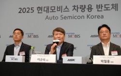 제1회 반도체 포럼 개최 이규석 현대모비스 사장(가운데)이 29일 경기 성남시 더블트리 바이 힐튼 서울 판교 호텔에서 열린 ‘제1회 현대모비스 차량용 반도체 포럼(Auto Semicon Korea)’에서 발언하고 있다. 이 사장은 2030년까지 완성차 반도체의 10%…