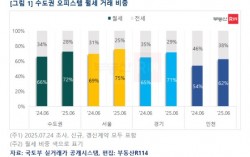 사회 초년생이 많이 거주하는 수도권 오피스텔 시장에도 ‘전세의 월세화’라는 그림자가 짙어지고 있다. 오피스텔은 이전에도 월세 비중이 높았지만, 그 비중이 최근 1년 사이 더 올랐다. 자료: R114 30일 부동산 R114에 따르면 지난 6월 수도권 임대차 계약 중…