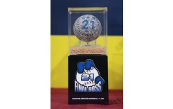 장 미셸 바스키아의 여동생인 제닌 에리보(58)가 22일 서울 동대문디자인플라자(DDP)에서 오빠의 27살 때 사진을 가리키고 있다. 언니 리잔과 바스키아 재단을 공동 관리하는 그는 ‘장 미셸 바스키아: 과거와 미래를 잇는 상징적 기호들’ 전시에 맞춰 처음 한국을 찾았…