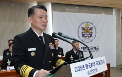 강동길 해군 참모총장이 지난해 10월 23일 충남 계룡대에서 열린 국회 국방위원회의 해군본부에 대한 국정감사에서 인사말을 하고 있다. 뉴스1 국방부는 12·3 비상계엄과 관련됐다는 의혹이 있다며 강동길 해군참모총장을 13일 직무배제했다. 정빛나 국방부 대변인…