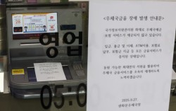대전 국가정보자원관리원 화재로 초비상이 걸린 28일 대전 서구의 한 우체국 출입문에 입금과 출금, 보험료 납부 등 모든 금융서비스 중지 안내문이 붙어있다. 김성태 객원기자 지난 26일 발생한 국가정보자원관리원(국정자원) 화재로 정부 전산망이 마비되면서 주말 내내 …