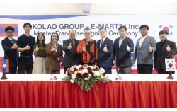 지난 25일 라오스 비엔티안 코라오그룹 본사에서 코라오그룹 오세영 회장(왼쪽에서 여섯번째)과 이마트24 강인석 상무(오른쪽에서 네번째)가 라오스 진출을 위한 마스터 프랜차이즈 계약을 체결 후 기념 촬영을 하고 있다. 사진 이마트24 이마트24는 라오스 코…
