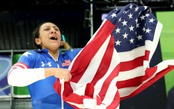 봅슬레이 여자 모노봅에서 우승한 뒤 성조기를 펼쳐보이며 환호하는 엘라나 메이어스 테일러. EPA=연합뉴스 장애를 지닌 두 아이를 키우며 묵묵히 현역 선수의 길을 걸어온 미국의 베테랑 봅슬레이 선수 엘라나 메이어스 테일러(42)…