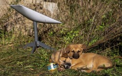 지난 2022년 10월 우크라이나 도네츠크주 리만 인근에서 우크라이나군이 탈환한 지역에 설치된 스타링크 단말기 옆에서 강아지들이 쉬고 있다. 로이터=연합뉴스 러시아군의 위성 인터넷망 사용이 제한된 이후 우크라이나 전선에서 지형 변화가 빨라지고 있다는 분석…