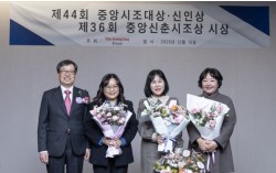 제 44회 중앙시조대상 시상식이 열렸다. 왼쪽부터 이현상 중앙일보 논설주간, 중앙시조대상 수상자 이송희 시조시인, 중앙시조신인상 수상자 김나비 시조시인, 중앙신춘시조상 수상자 최애경 시조시인. 권혁재 사진전문기자 제44회 중앙시조대상과 중앙시조신인상, 제…