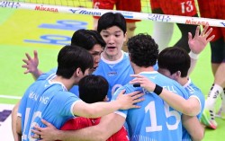 2일 수원체육관에서 열린 한국전력과의 경기에서 득점한 뒤 기뻐하는 대한항공 선수들. 사진 한국배구연맹 남자배구 대한항공이 4연승을 이어가며 2위 현대캐피탈과 격차를 벌리면서 고공 비행을 이어갔다. 대한항공은 2일 수원체육관에서 열린 2025~2026…