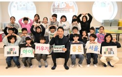 서울시가 맞벌이 가정을 위한 ‘틈새 돌봄 안전망’ 구축에 나섰다. 23일 오후 서울 동작구 우리동네키움센터에서 오세훈 서울시장과 아이들이 ‘아이 키우기 좋은 서울’이 적힌 캠페인 보드를 들고 있다. [사진 서울시] 서울시는 초등학생 자녀를 둔 맞벌이 가정 부모의 …