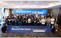 2025 한-아세안 FIELD 프로그램 컨퍼런스 참석자들이 손에 손잡고 함께 포즈를 취했다. 사진 대한축구협회 축구사랑나눔재단 동남아시아국가연합(ASEAN) 소속 10개국 축구 지도자와 행정가들이 축구발전 방안에 대해 함께 교…