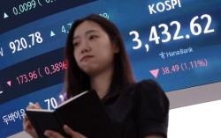 26일 서울 중구 하나은행 본점 딜링룸에서 딜러가 업무를 보고 있다. 이날 코스피는 전 거래일보다 0.89% 내린 3440.39로 개장했다. 연합뉴스 코스피가 장중 2% 넘게 내려 3400선을 내줬다. 미국의 금리 인하 기대 약화와 한미 관세 협상 불…