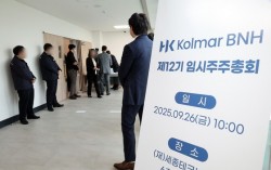 콜마비앤에이치 임시 주주총회가 26일 세종시 조치원읍 세종테크노파크에서 열렸다. 연합뉴스 한국콜마그룹 경영권 다툼의 단초가 됐던 콜마BNH 경영권 분쟁에서 윤상현 콜마홀딩스 부회장이 승기를 잡았다. 동생 윤여원 대표(사장)가 이끌던 콜마BNH에 사내이사로 입성한 …