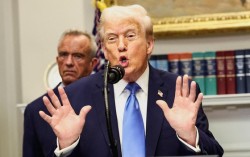도널드 트럼프 미국 대통령. 로이터=연합뉴스 도널드 트럼프 미국 대통령은 25일(현지시간) 한미 무역 합의에 따른 한국의 대미 투자 금액이 3500억 달러(약 490조원)라는 점을 재차 언급하면서 "그것은 선불(up front)"이라고 말했다. 트럼…