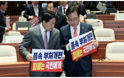 여야는 25일 국회 본회의에서 패스트트랙(신속처리안건) 지정을 두고 강하게 충돌했다. 더불어민주당이 추진하는 민주화유공자법 제정안에 대한 패스트트랙 찬반 투표수가 재석(274명)보다 1장 많은 275장으로 집계된 게 발단이었다. 우원식 국회의장은 ‘투표의 수가 명…