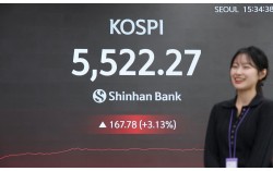 12일 사상 처음 5500선을 넘은 코스피 지수. [사진 신한은행] 코스피가 12일 사상 처음 5500선 문턱을 넘었다. 반도체 ‘투톱’이 주가를 밀어올렸다. 과속하는 증시에 대한 불안감이 안정적인 수익을 기대할 수 있는 배당주 몸값도 끌어올리고 있다. …