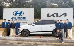 대상 수상 ‘아이오닉9’ 개발자들 성능·공간·디자인 통합 협의체 운영 동급 최고 주행거리·실내공간 확보 업데이트 가능, 계속 진화하게 설계 현대자동차 MLV R&H시험팀. 사진 왼쪽부터 곽준호 책임연구원, 최상현 연구원, 이민녕 책임연구원, 김도달 사원, 이상혁 연구…