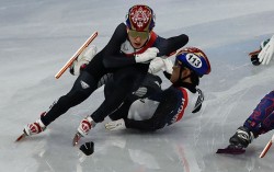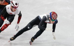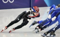 쇼트트랙 남자 500m 예선에 출전한 임종언이 결승선을 향해 다리를 뻗고 있다. 린샤오쥔에 밀려 3위로 탈락했다. 연합뉴스 앤드류 허(미국)과 린샤오쥔(중국), 두 명의 한국계 선수에게 밀려 임종언(19·고양시청)이 500m 준준결승 진출에 실패했다. …