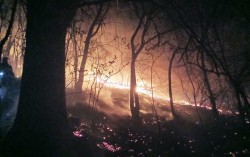 산불 진화 헬기가 24일 오전 경남 밀양시 삼랑진읍 민가 주변에서 산불 진화 작업을 하고 있다. 연합뉴스 [속보] 산림청 "밀양 산불, 주불 진화 완료"