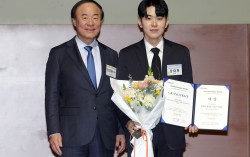 11일 제32회 삼성휴먼테크논문대상 시상식에서 전영현 삼성전자 부회장(왼쪽)이 강대현(28·카이스트 전기전자공학부) 대상 수상자와 기념촬영하고 있다. 강정현 기자 1차 심사에서 고배를 마셨던 대학원생이 1년 뒤 같은 논문 대회에서 대상을 수상했다. 카이스…