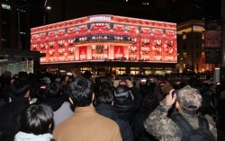 지난해 서울 중구 신세계백화점 본점 외관에 설치된 '신세계 스퀘어' 전광판에 크리스마스 영상이 상영되고 있다. 연합뉴스 국내 주요 백화점 3사(롯데백화점·신세계백화점·현대백화점)가 지난해 내수 부진 속에서도 실적을 개선하는 데 성공했다. 업계에서는 특화 …