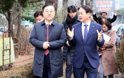 김윤덕(왼쪽) 국토교통부장관이 11일 오전 경기도 고양시의 한 아파트 단지를 찾아 이동환 고양시장의 안내를 받으며 1기 신도시(고양) 정비사업 선도지구 진행상황 현장점검을 하고 있다. 뉴시스 김윤덕 국토교통부 장관은 11일 “공공 주도의 공급뿐 아니라 민간의 재건…