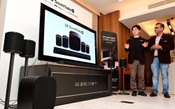 5일 서울 중구 앰버서더 서울 풀만에서 열린 'LG 사운드 스위트' 설명회에서 박찬후 LG전자 오디오개발실장(왼쪽), 아심 마서 돌비 아태지역 마케팅총괄 부사장이 제품과 기술을 설명하고 있다. 사진 LG전자 사람이 스피커에 맞춰야 할까, 스피커가 사람에 …