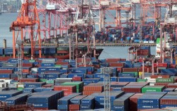 부산 남구 신선대(사진 아래) 및 감만(위) 부두 야적장에 수출입 컨테이너가 쌓여 있다. 뉴시스 이달 1~10일 한국 수출이 전년 동기 대비 40% 넘게 증가하며 강한 반등세를 보였다. 인공지능(AI) 수요 확대에 따른 반도체 수출 급증이 전체 흐름을 주도했다. …