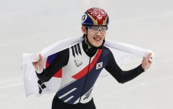 쇼트트랙 임종언이 12일(현지시간) 이탈리아 밀라노 아이스 스케이팅 아레나에서 열린 2026 밀라노 코르티나담페초 동계올림픽 쇼트트랙 남자 1000m 결승에서 동메달을 확정한 뒤 태극기를 두르고 기뻐하고 있다. 김종호 기자 “나 자신을 믿자고 생각했어요.” …