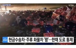 사진 방송화면 캡처 광주 호남고속도로에서 주류 운반 차량과 현금 수송 차량이 추돌하는 사고가 발생했다. 사고로 맥주병과 현금다발로 도로가 뒤덮이는 아수라장이 벌어졌다. 1일 광주북부소방서와 경찰 등에 따르면 지난달 30일 오후 8시 40분께 산월나…