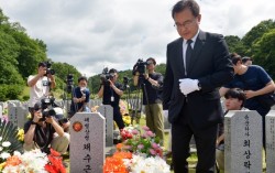 채 해병 수사 방해 의혹 사건을 수사하는 채 해병 특별검사팀 이명현 특별검사와 특검팀원들이 공식 출범을 하루 앞둔 1일 국립대전현충원 고 채수근 해병 묘소를 찾아 참배하고 있다. 김성태 객원기자 순직해병 특별검사팀이 김건희 여사의 '임성근 구명로비' 의혹…
