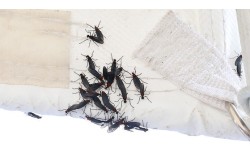 지난달 27일 인천 서구 신검단중앙역에서 열린 인천도시철도 1호선 검단연장선 개통기념식장 텐트에 러브버그들이 몰려들어 붙어 있다. 연합뉴스 ‘러브버그’로 불리는 붉은등우단털파리떼의 습격으로 불편을 호소하는 시민들이 늘어나고 있지만 생태계 익충으로 분류돼 …